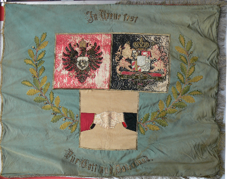Weiterhin gibt es noch die Fahne aus der Gründungszeit, die aber sehr stark verschliessen ist.